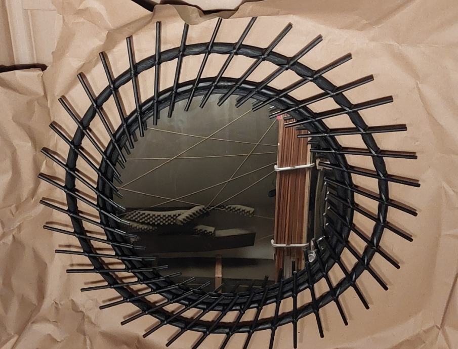 Ogledalo Ikea Austbö, novo, u originalnoj ambalaži. Crni okvir od bambusa i ratana promjera 63 cm. Ikea ga više ne prodaje. Prva slika je sa neta, ostale su moje.