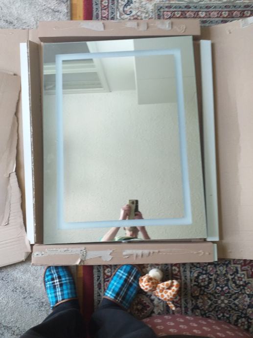 Ima led osvjetljenje.Malo je okrhnuto rub ogledala jedva vidljivo ali zalljepljeno!Ima račun.Novo kupljeno