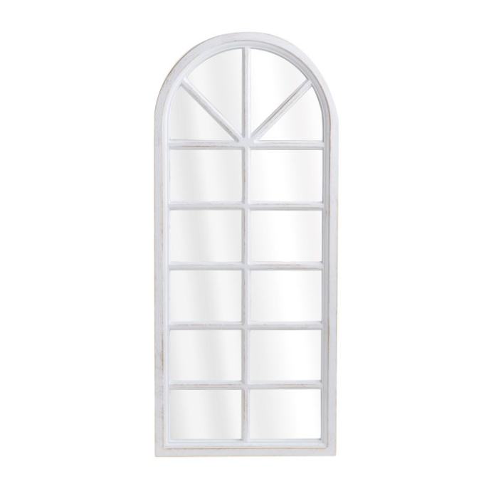 Ovo ogledalo dimenzije je 75x32 cm sa bijelim okvirom u obliku prozora.