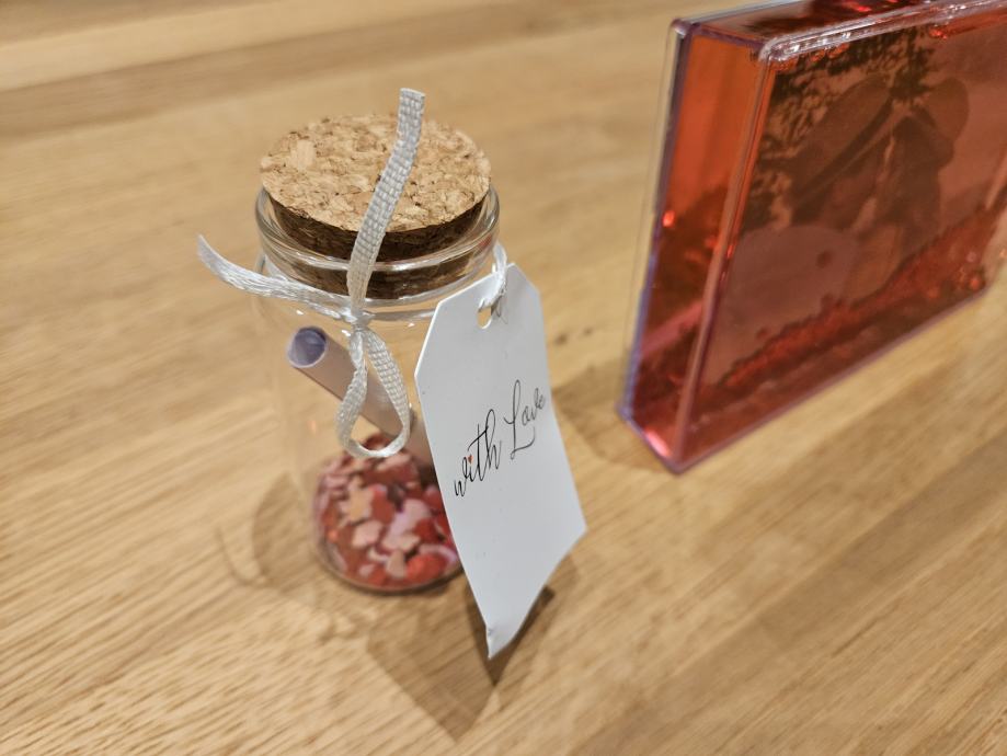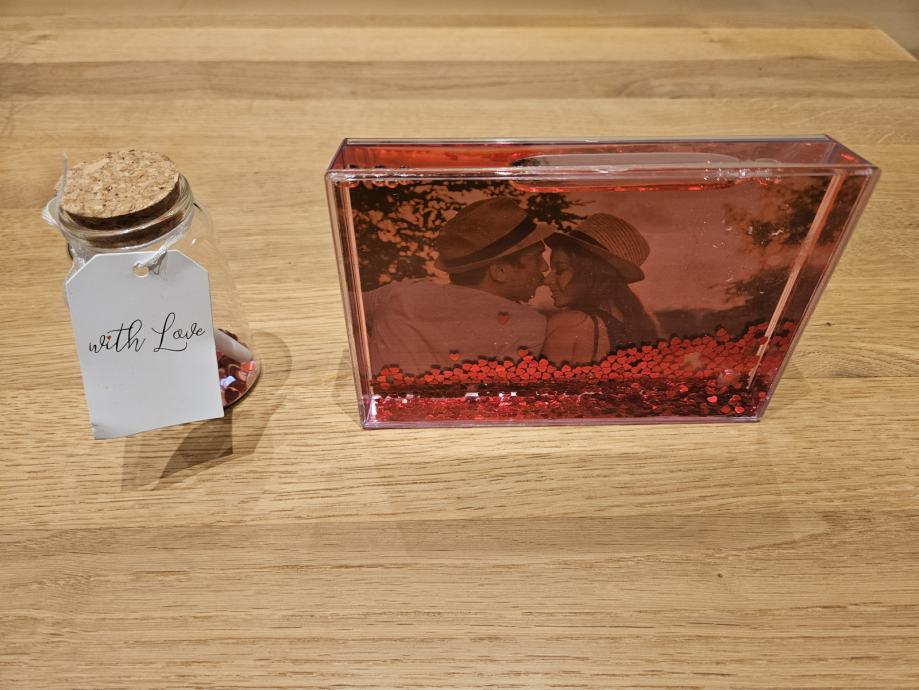 Okvir za fotografiju i bočica s porukom *NOVO*