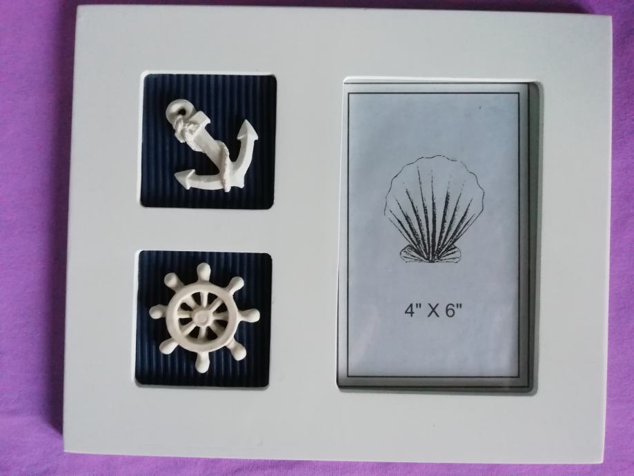 Bijeli drveni okvir za slike, mornarski motiv. Nikad korišten. Dodatne fotografije i dimenzije na upit.