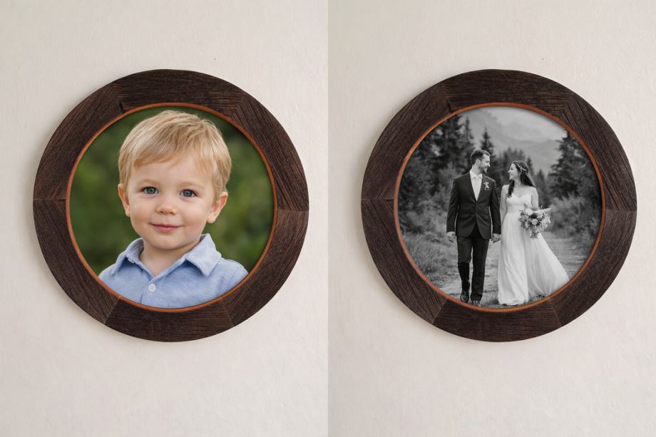 Prodajem drveni okrugli okvir za slike izrađen od starih dasaka