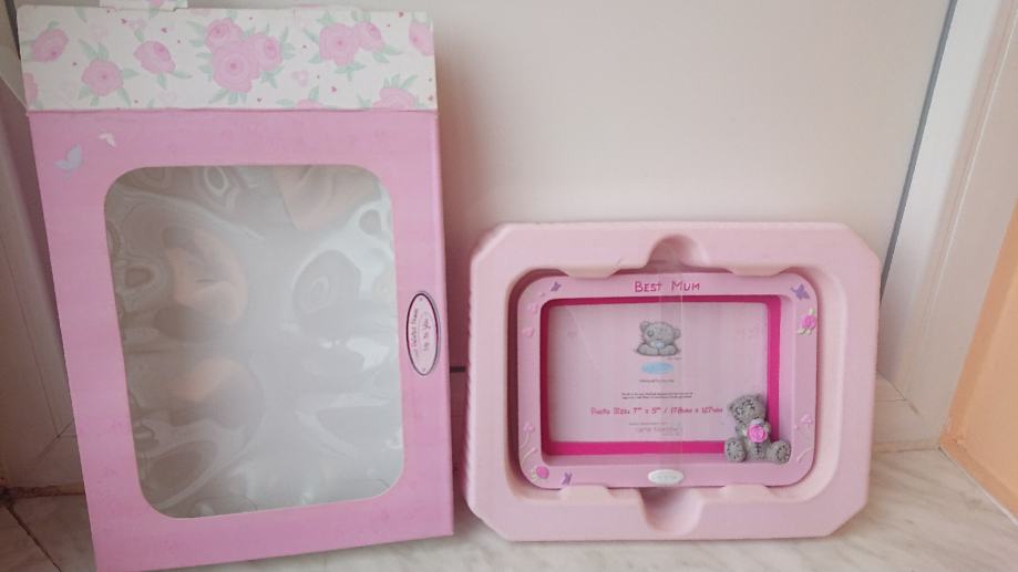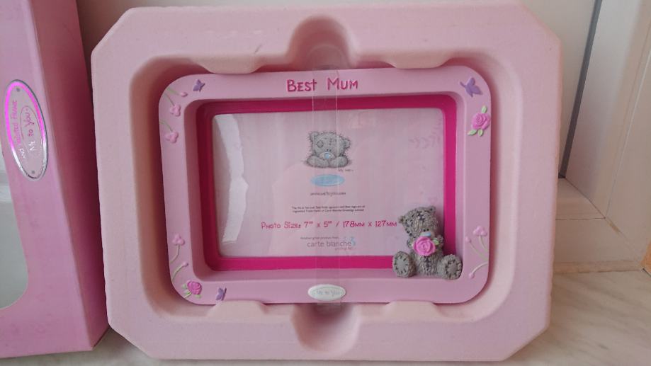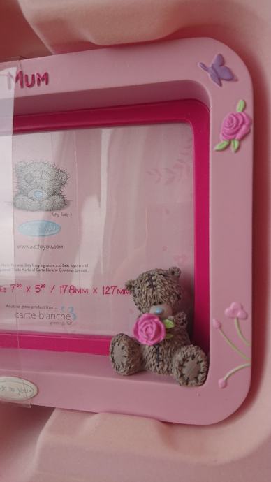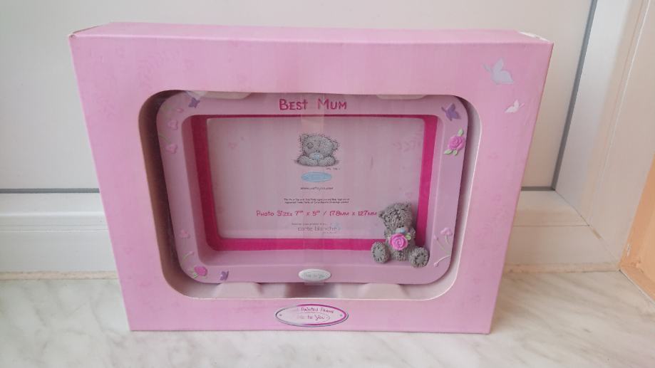 Okvir za slike, novo, u original kutiji, sa natpisom Best mum tj Najbolja mama, sa 3D medvjedićem i motivima cvjetića, ručno oslikan, marka Me to you.