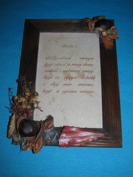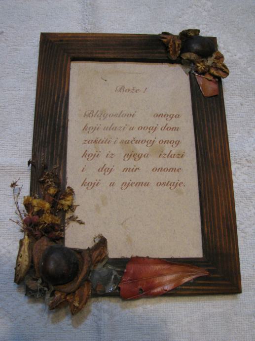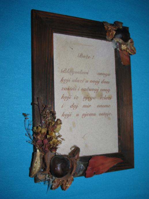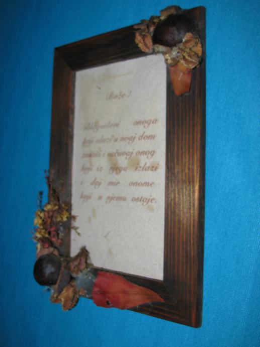 Drveni okvir, dodatno ukrašen kestenom i suhim cvijećem (može se i ukloniti po želji).
