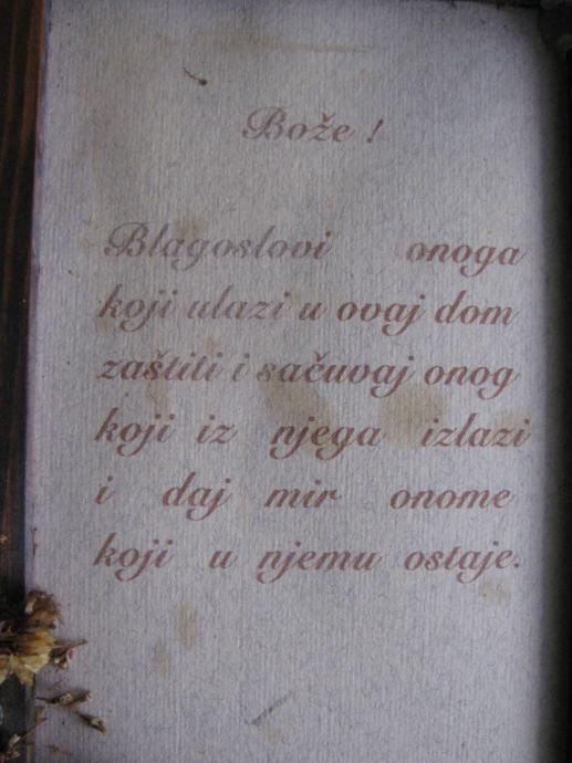 Drveni okvir za zapisom Bogu na starom debljem papiru.