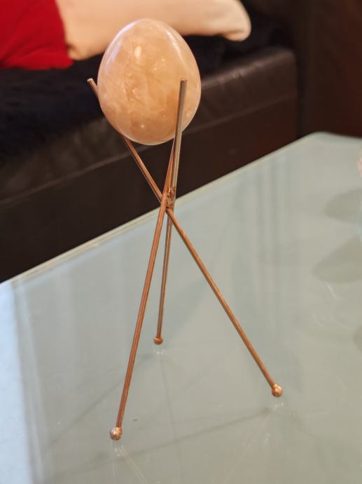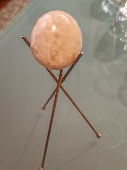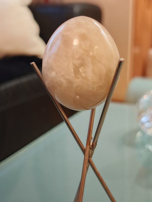 Predivno elegantno Onix jaje na metalnom zlatnom stalku.