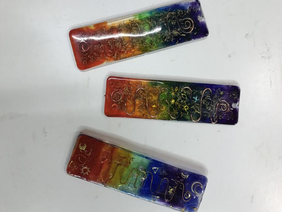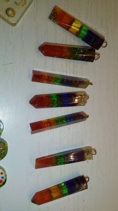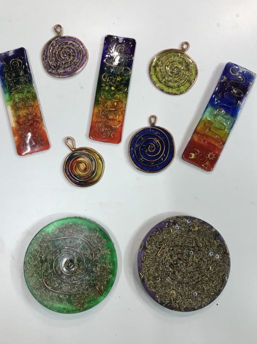 U svakom ovom orgonitu je jedna spirala u samom vrhu, gorski kristal, cvijeće i još 2,3 i negdje 4 zavojnice (teslina, dvostruka, trostruka ili prvi znak reiki), metalna piljevina je u 3 sloja-mesing i aluminij po redu kako treba ići od sitnije prema krupnijoj.
