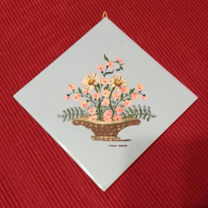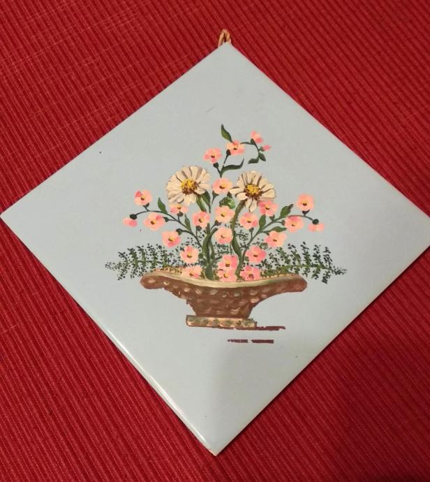 Ukrašena unikatna keramička pločica detalji cvijeće - slikano