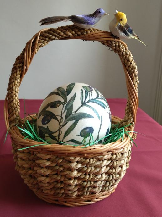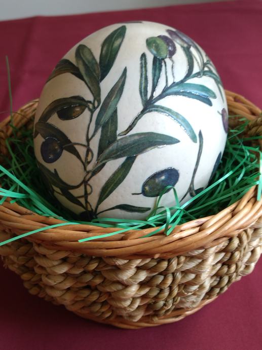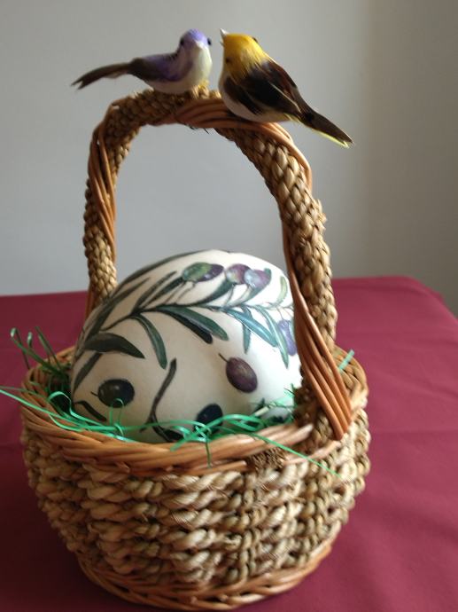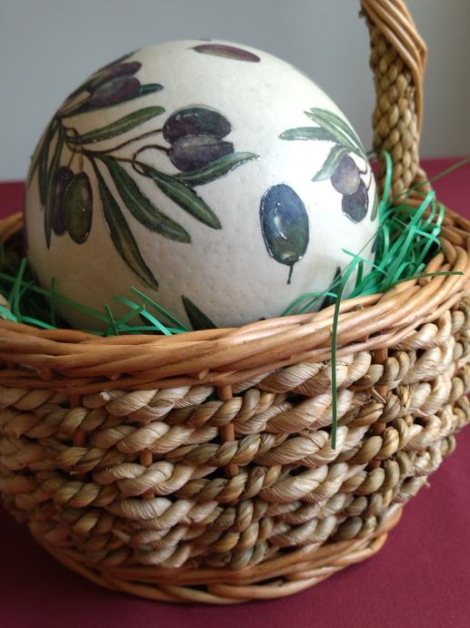 LIJEPA USKRSNA DEKORACIJA - oslikano nojevo jaje u novoj pletenoj košarici.
