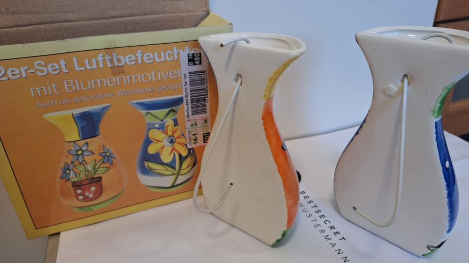 Prodajem komplet od 2 komada ovlazivaca zraka koji se moze staviti na radijator ili objesiti na zid Moze sluziti i kao ukrasna zidna vaza
