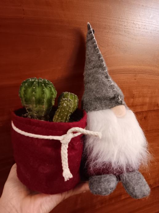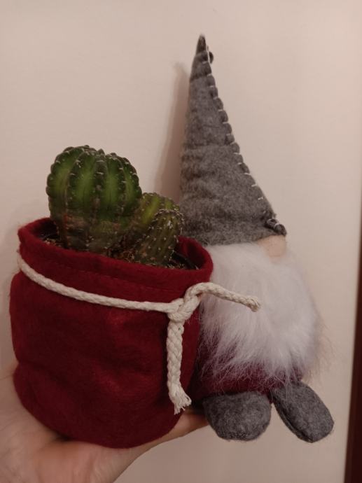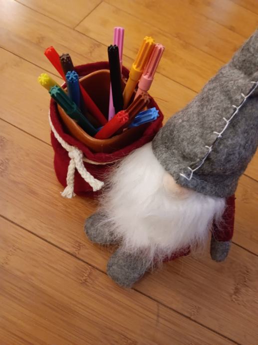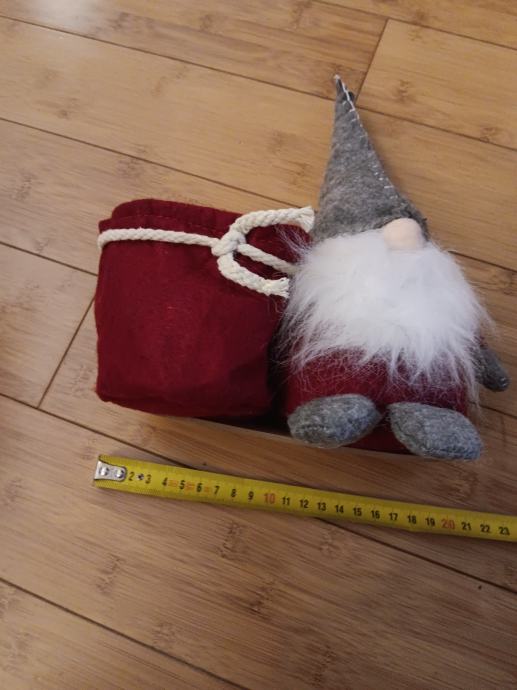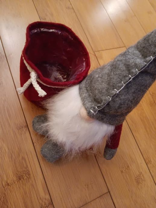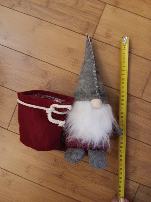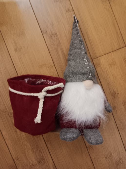 Dekoracija Patuljak s prigodnom košarom, koja može poslužiti kao žardinjera za manju lončanicu, držač za olovke i sl. Novo.