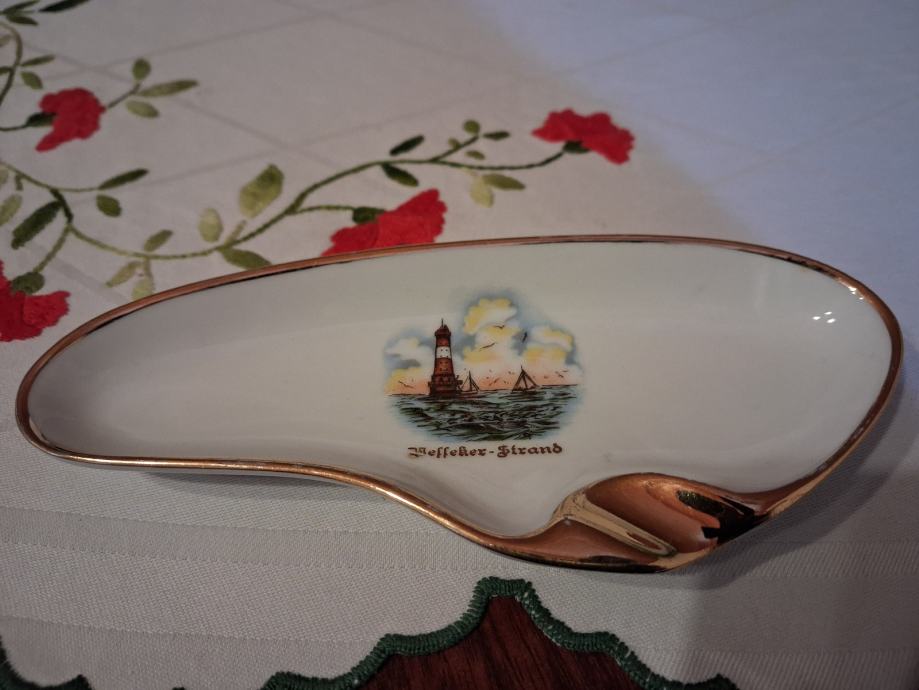 Keramička pepeljara 24 karatna pozlata u super stanju
