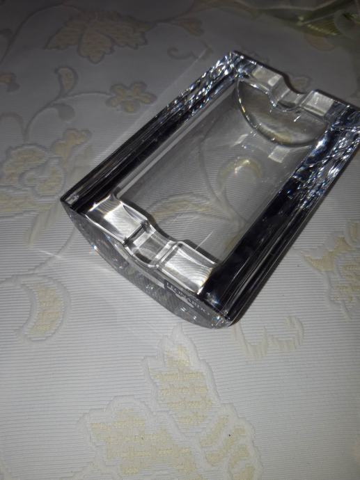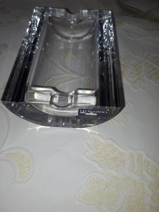 Nova pepeljara robne marke Leonardo, 14,5x9,5cm, 1090 grama, puno staklo, bočno utori. Nikada korištena.