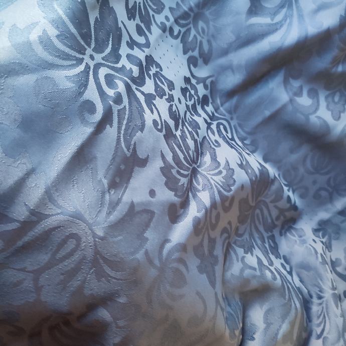U jednom satenu je lijepi diskretni cvjetni tisak, u drugima neke nepravilne prugice, no sve su tamno, tamno plave boje - od satena.