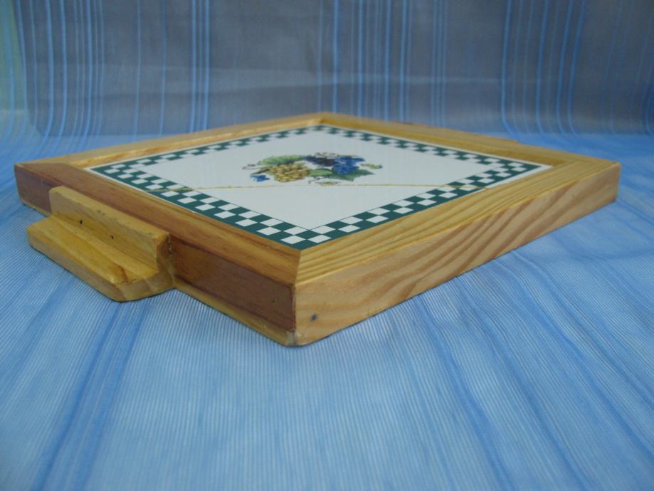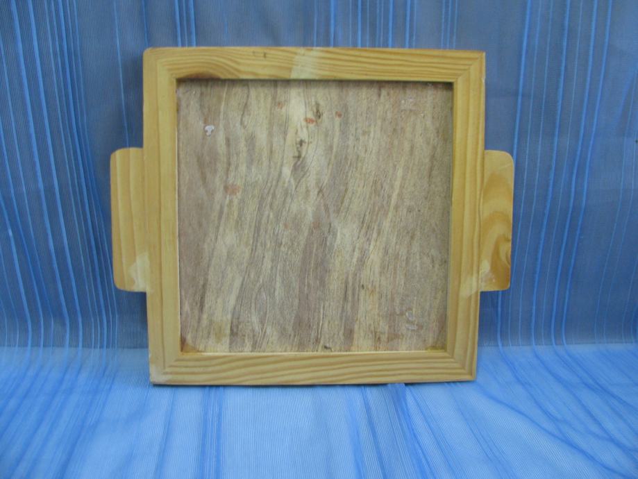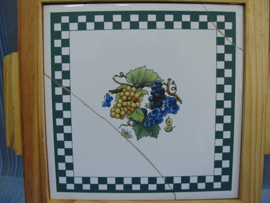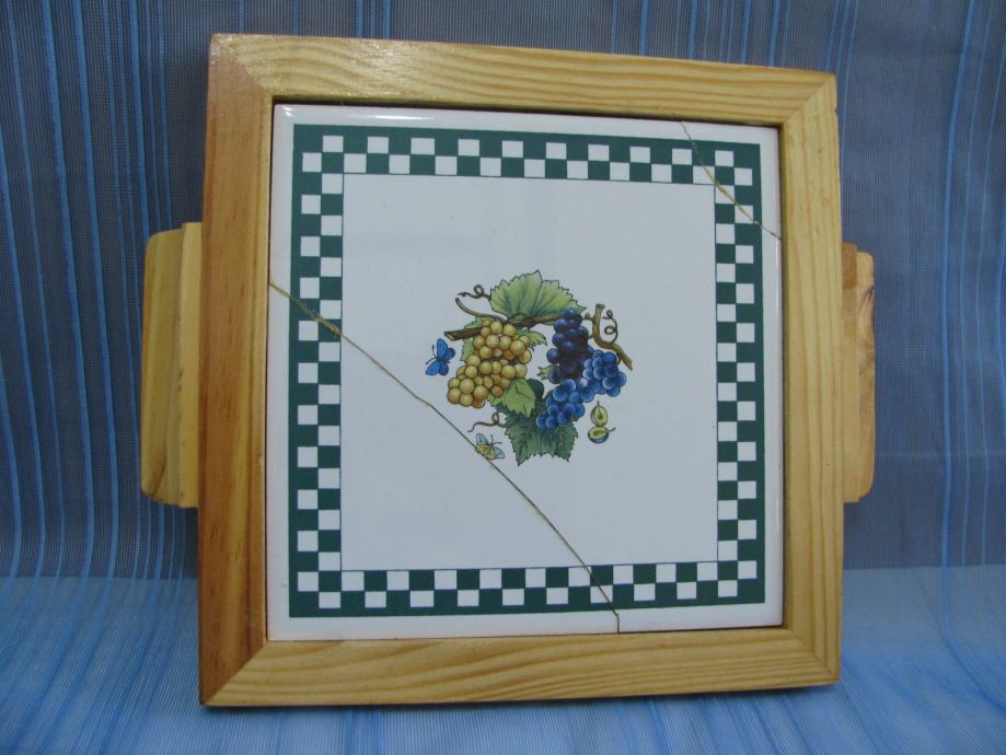 Sama keramička ploćica je pukla, zaljepita i sada je stabilna. Sve u drvenom ukviru sa držačima.