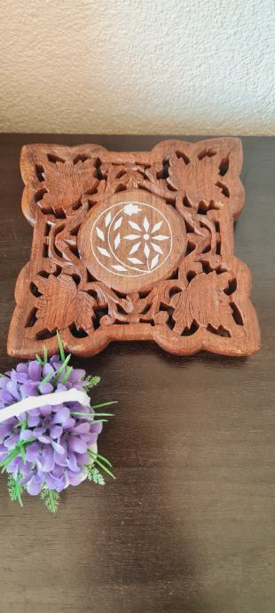 Podmetač, ručni rad s intazijama. U savršenom stanju. Zemlja porijekla je Indija.