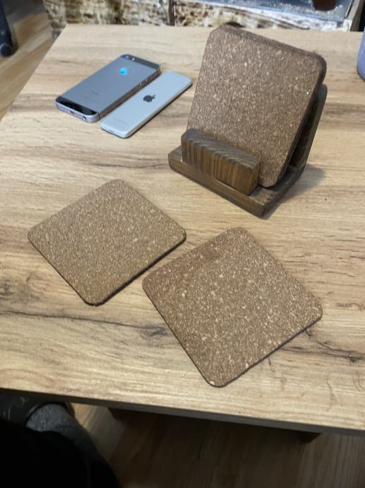 Prodajem ručno rađene podmetače za čaše ( šest komada ) sa drvenim stalkom. Cijena samo 17e.