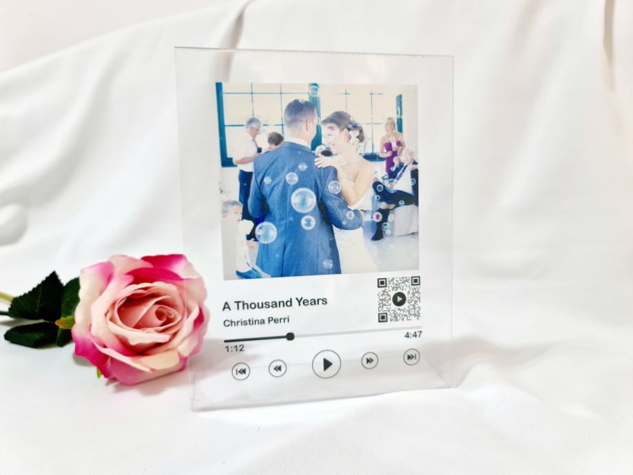 Poklon za godišnjicu braka, veze ili Valentinovo, slika i pjesma, QR