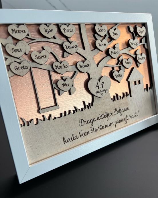 Poklon za najdražu učiteljicu! Ovakav poklon još sigurno nije dobila ♥️ može se naručiti sa okvirom ili bez njega, a možete birati i između više boja pozadina. Dizajn je po želji (zvjezdice, sovice, jabuke, srca, žabice…)
