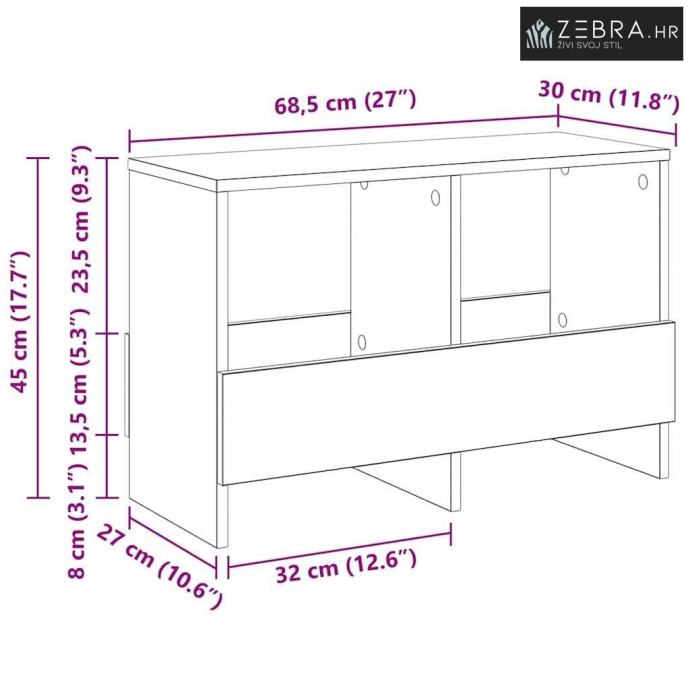 Sveukupne dimenzije: 68,5 x 30 x 45 cm (D x Š x V)
