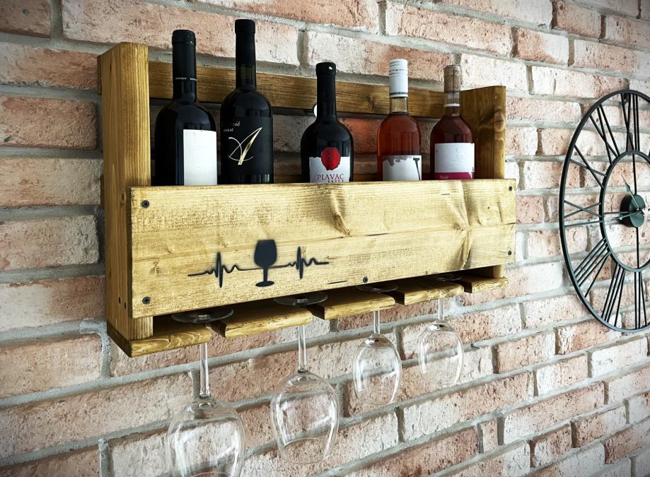 Polica nije samo funkcionalna, već i estetski privlačna, savršena za izlaganje vaših omiljenih vina i čaša. Idealna za ljubitelje vina ili kao poklon za posebne prigode.