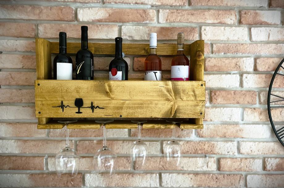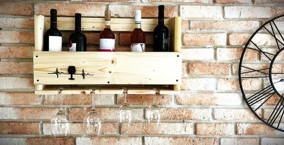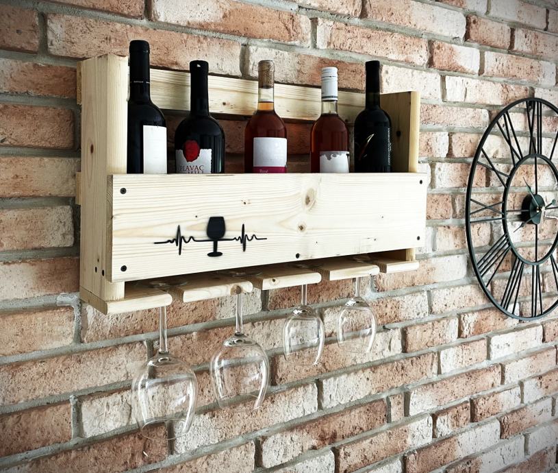 Elegantna drvena polica za vino, savršen dodatak za svaki dom ili vinski podrum. Ova kvalitetna polica izrađena je od čvrstog drveta jelovine , sa stilskim dizajnom koji će obogatiti svaki interijer.