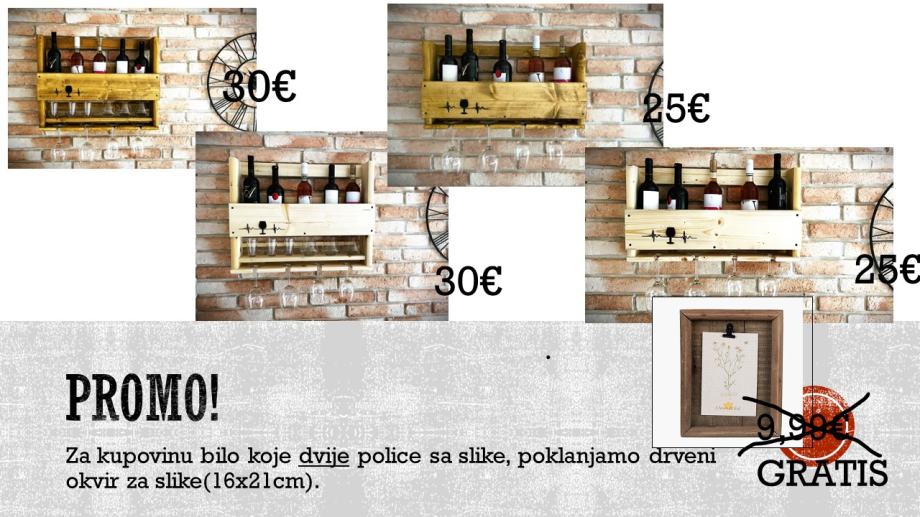 Ne propustite priliku da obogatite svoj prostor s ovom prekrasnom policom za vino! Javite se za dodatne informacije a kompletnu ponudu pogledajte na linku ispod.
