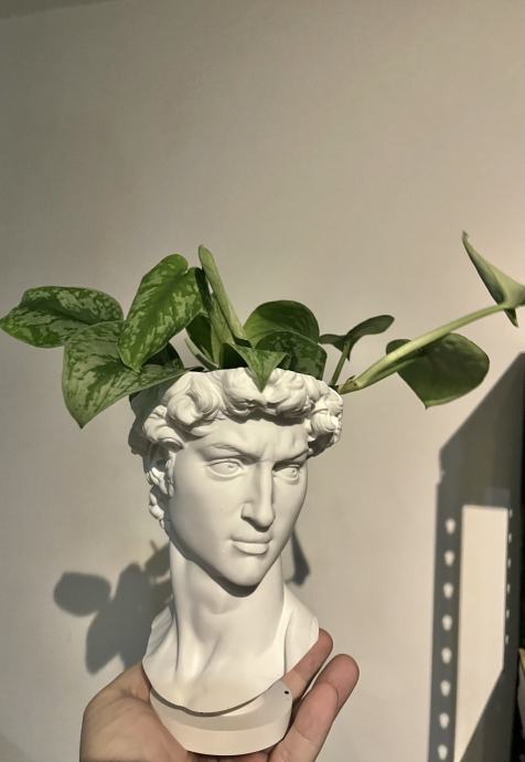 Prodajem unikatnu 3D printanu posudu za cvijeće u obliku glave Michelangelovog Davida. Izrađena od kvalitetnog materijala, dolazi s rupama za drenažu i posudicom ispod kako bi višak vode mogao nesmetano otjecati.