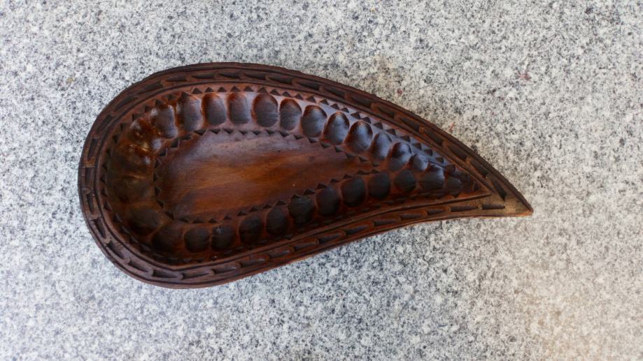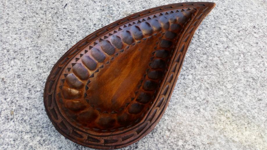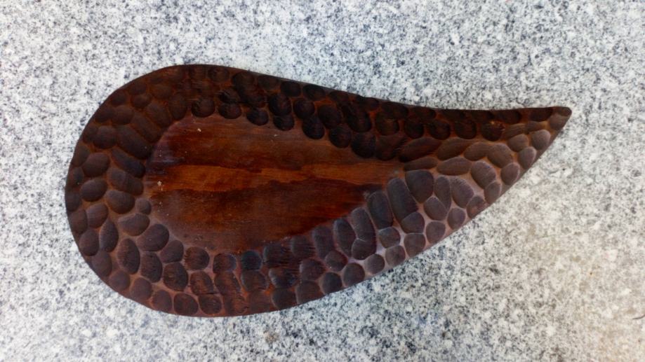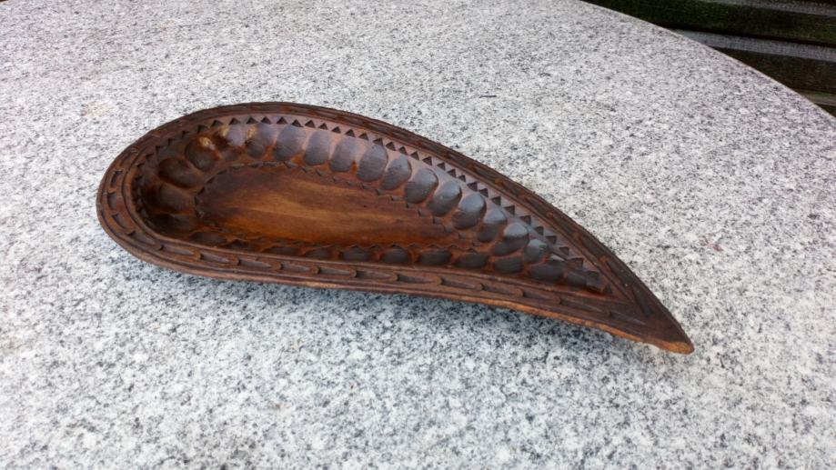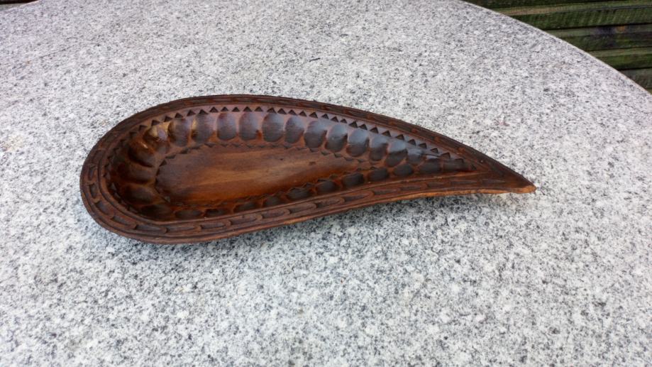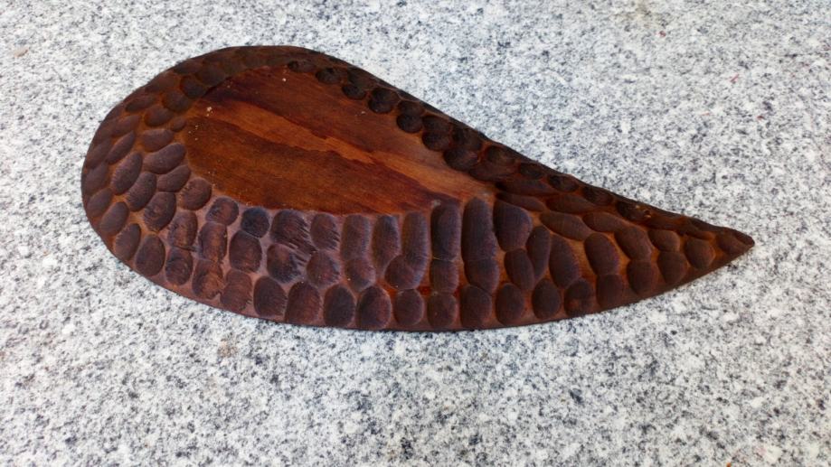 Zgodna drvena posuda u obliku lista. Zgodna dekoracija na stolicu ili polici. Duzine je 26 cm
