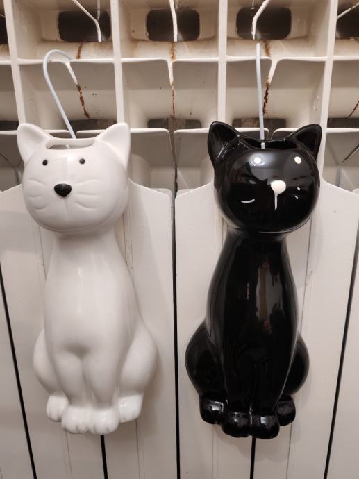 Posude od keramike za držati vodu na radijatoru. Mačke nisu korištene, a bijela posuda par dana.