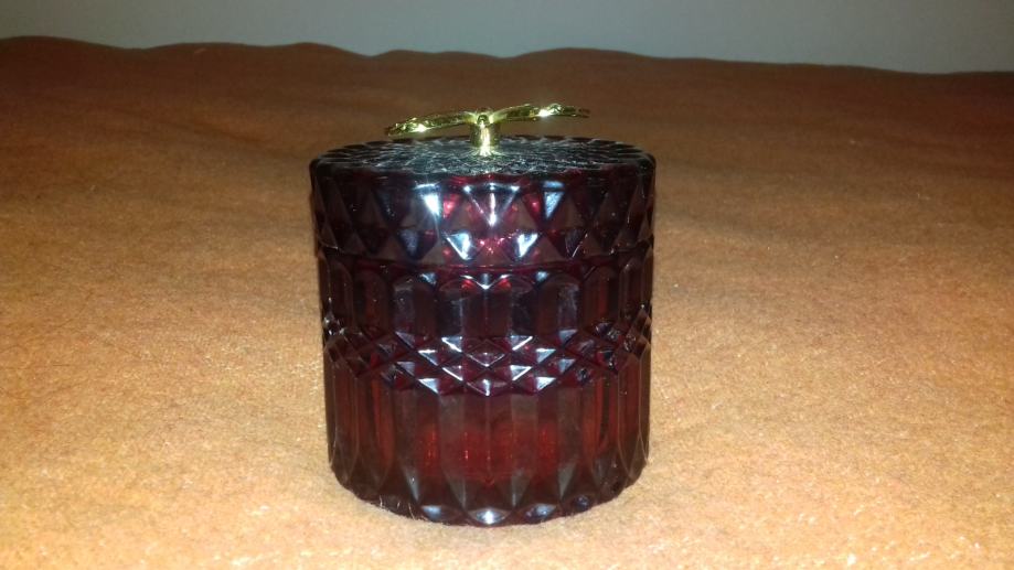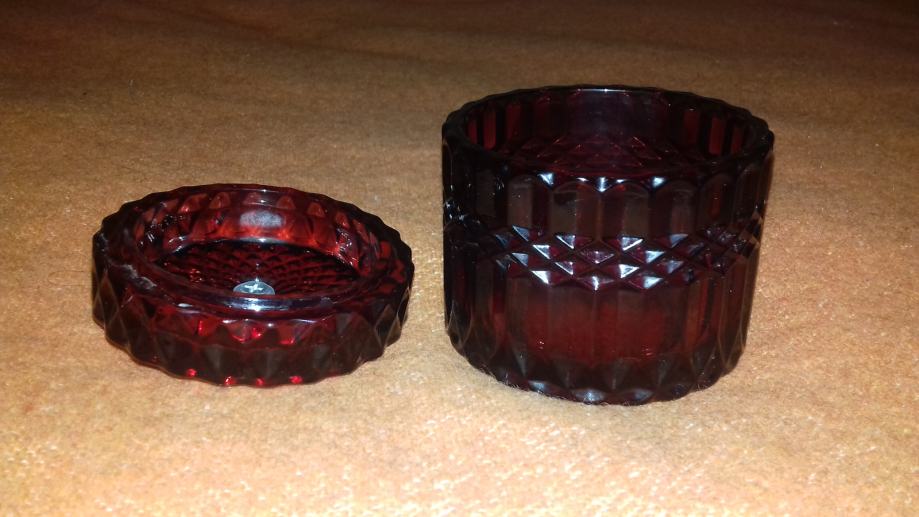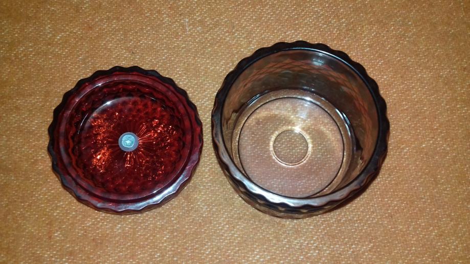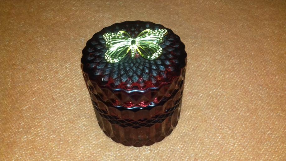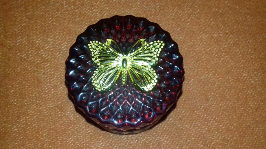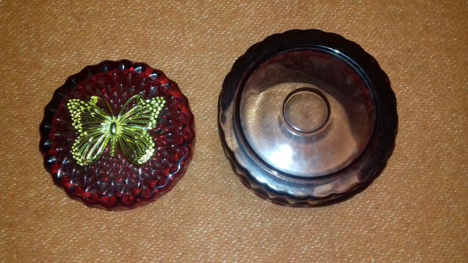 Predivna crvena kristalna posuda sa motivom leptira, u odličnom stanju.