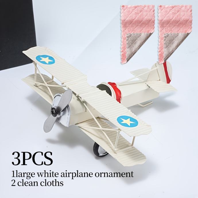 Set od 3 komada, 1 komad velikog bijelog aviona + 2 komada krpe za čišćenje, vintage glačalo, kolekcija vintage modela aviona, rukotvorine, ukras za avion, dnevni boravak, minijaturni metalni model aviona, kućni dekor