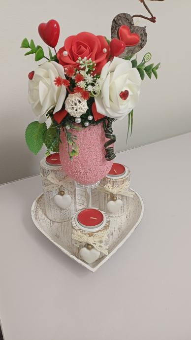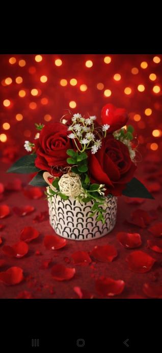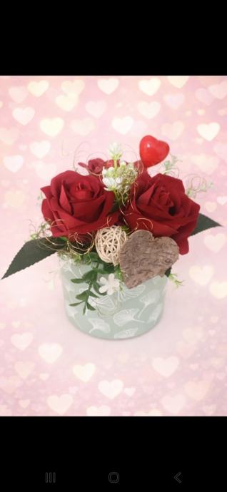 Prodajem prekrasne prigodne bukete koji služe kao dekoracija za dom. Radi se o ručno izrađenim aranžmanima s umjetnim saten i plisanim ružama , dopunjenim dekorativnim detaljima poput srčanih elemenata i zelenih listova. Svaki buket dolazi u ukrasnoj posudici, bilo staklenoj, keramičkoj ili u obliku šalice. Savršeni su za uljepšavanje prostora ili kao poklon za posebne prilike. Svi buketi su novi i nekorišteni.
