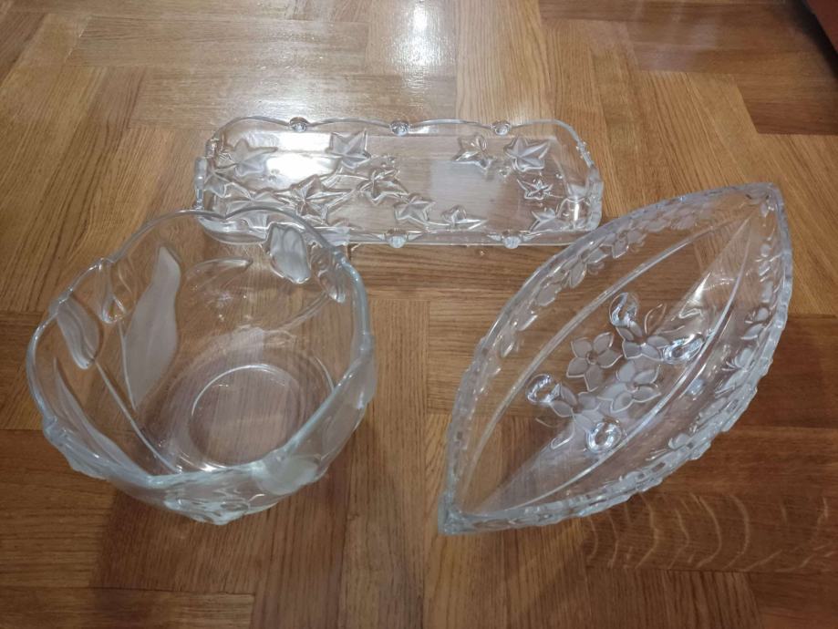 prodajem trodjelni stakleni set (zdjela,tacna,ovalna posuda) ,cijena-40 eura