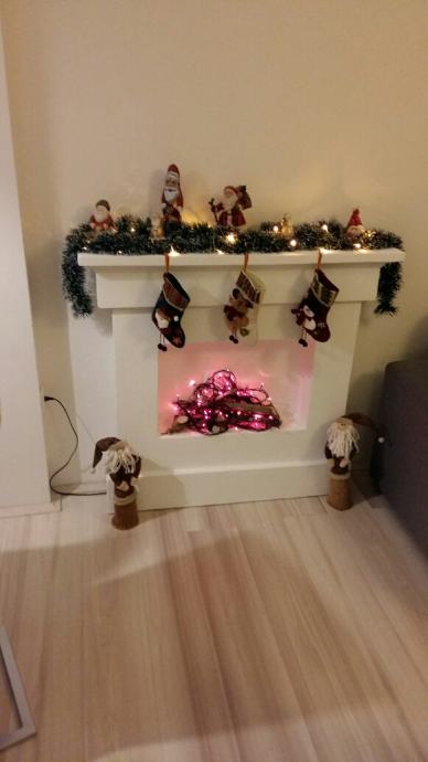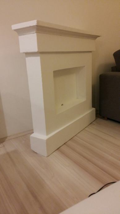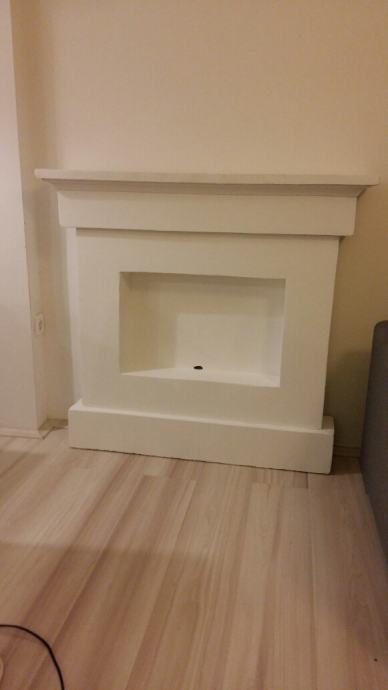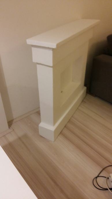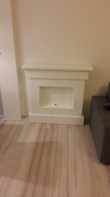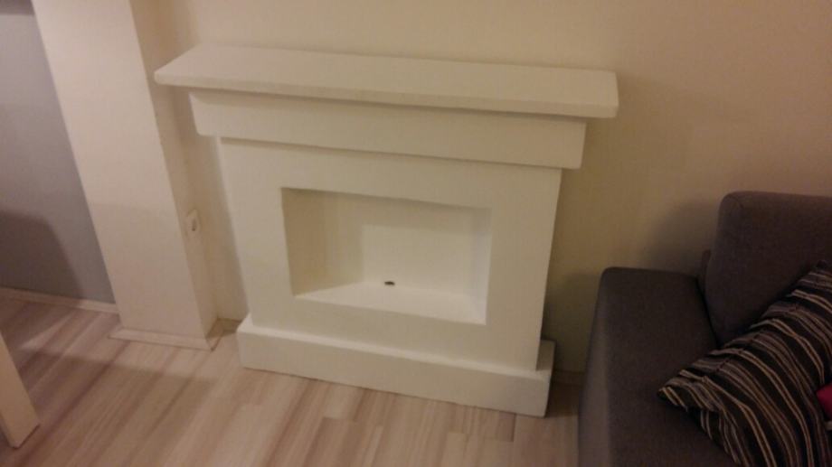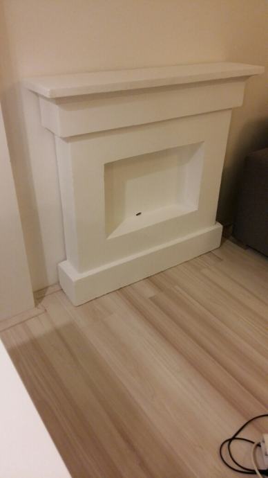 Prodaje se lažni kamin. Veličine je 1000 x 1000 x 17 cm. Napravljen je od kombinacije knaufa i stiropora. Sve je naknadno izgletano i obojano u bijelu boju. U sredini se nalazi rupa za srujni kabal (u slučaju postavljanja neke rasvjete ili lampica).
