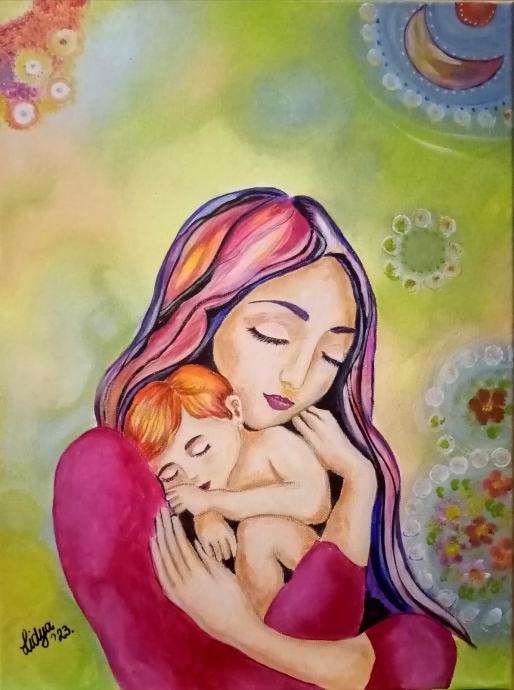 Slika je radjena akrilnim bojama, dimenzija 30x40 cm.