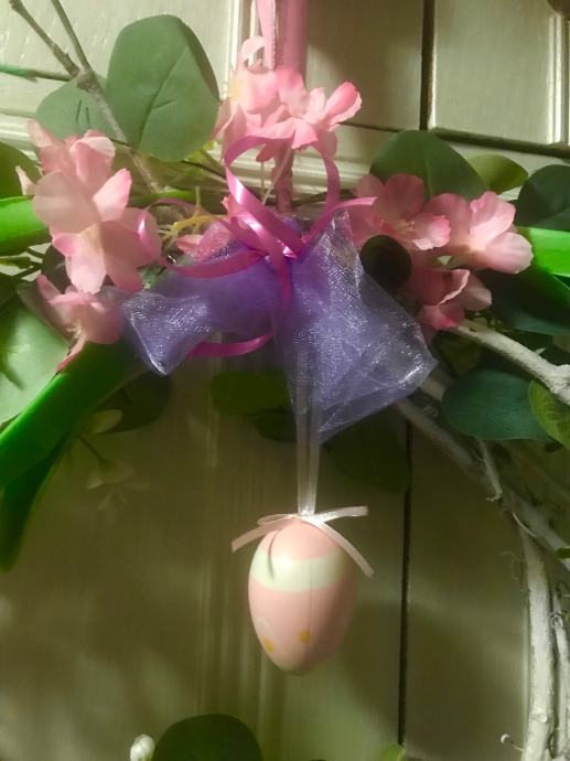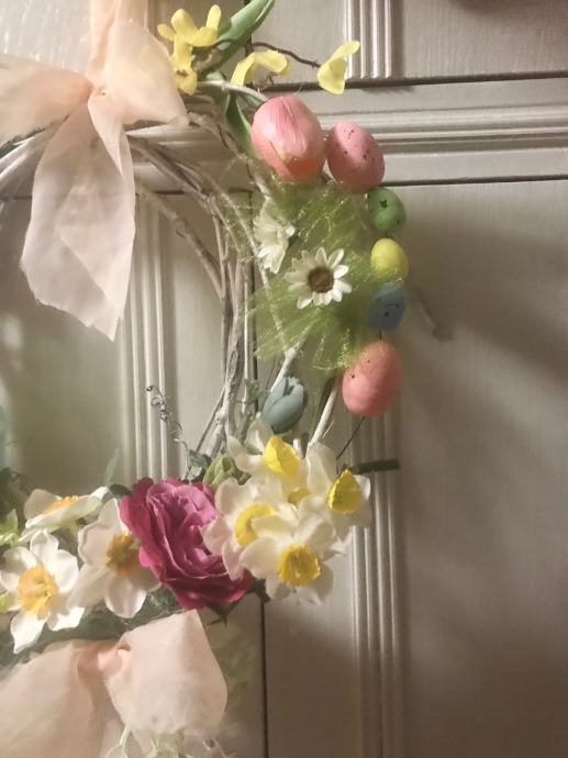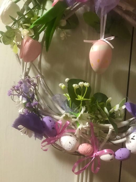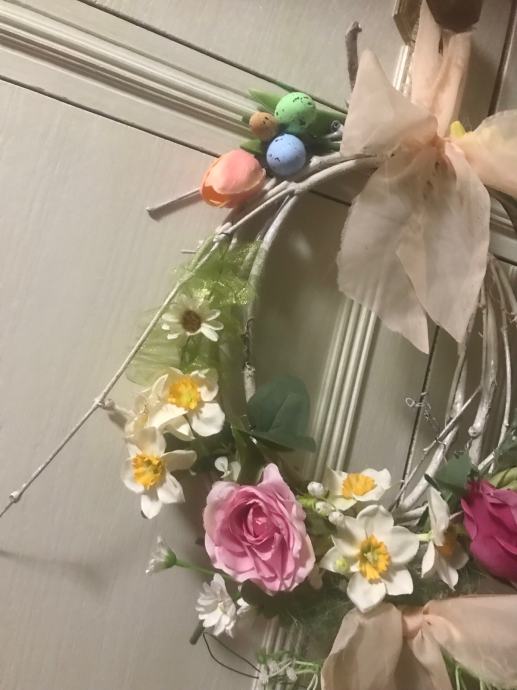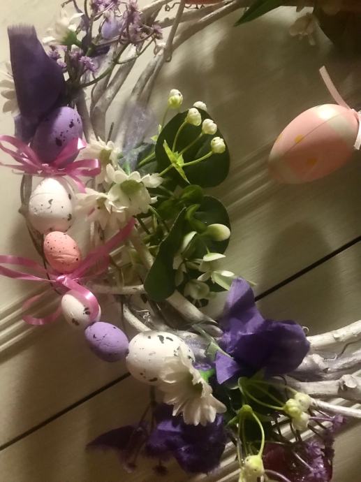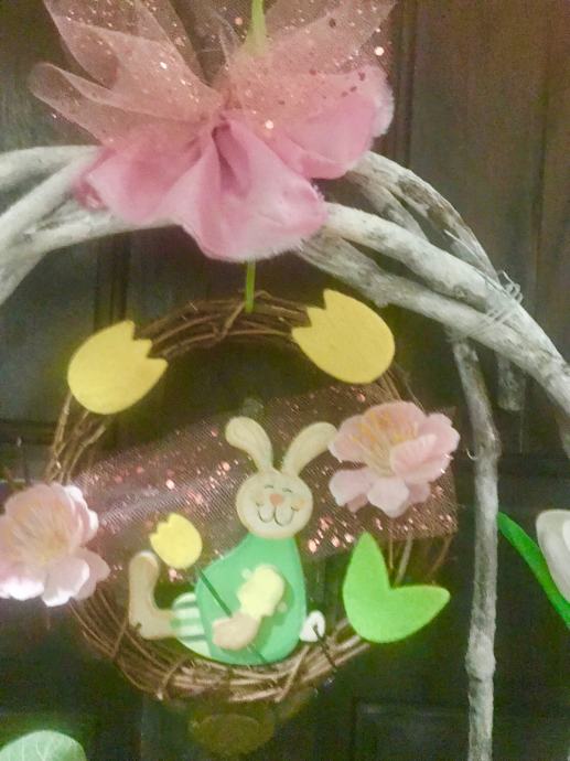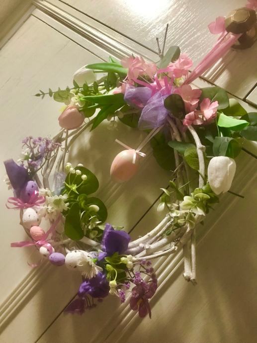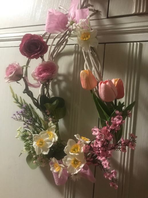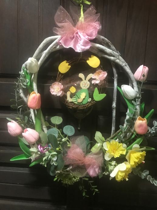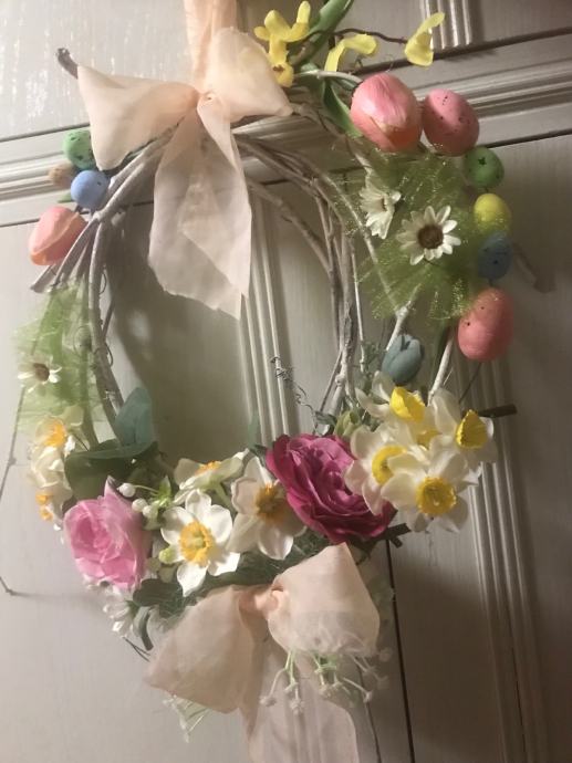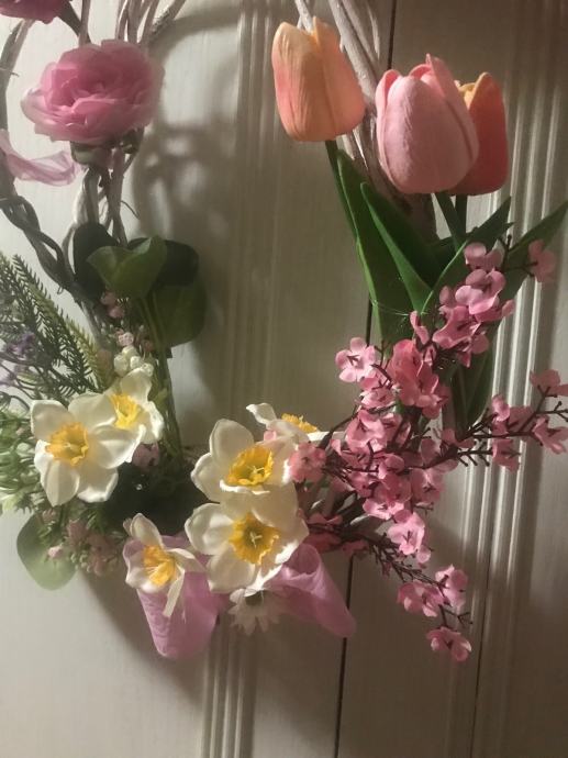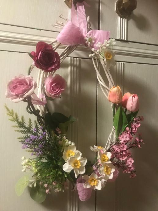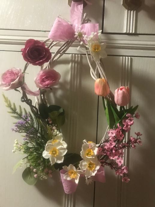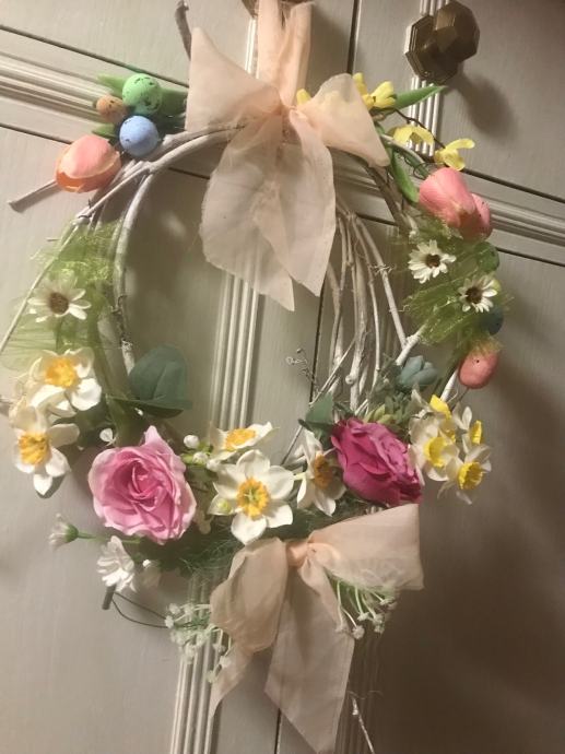Proljetno/ Uskrsni vjencic za vrsta, prozor , terasu ili po želji- handmade od šiblja, umj. cvijeća i trakica