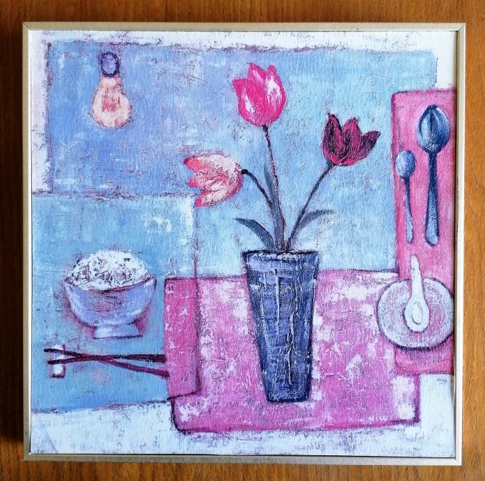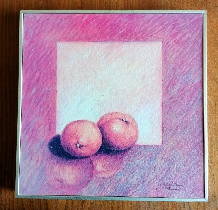 "Vaza sa cvijećem" i "Voće", veličina 29 x 29 cm, cijena po 5 eura.