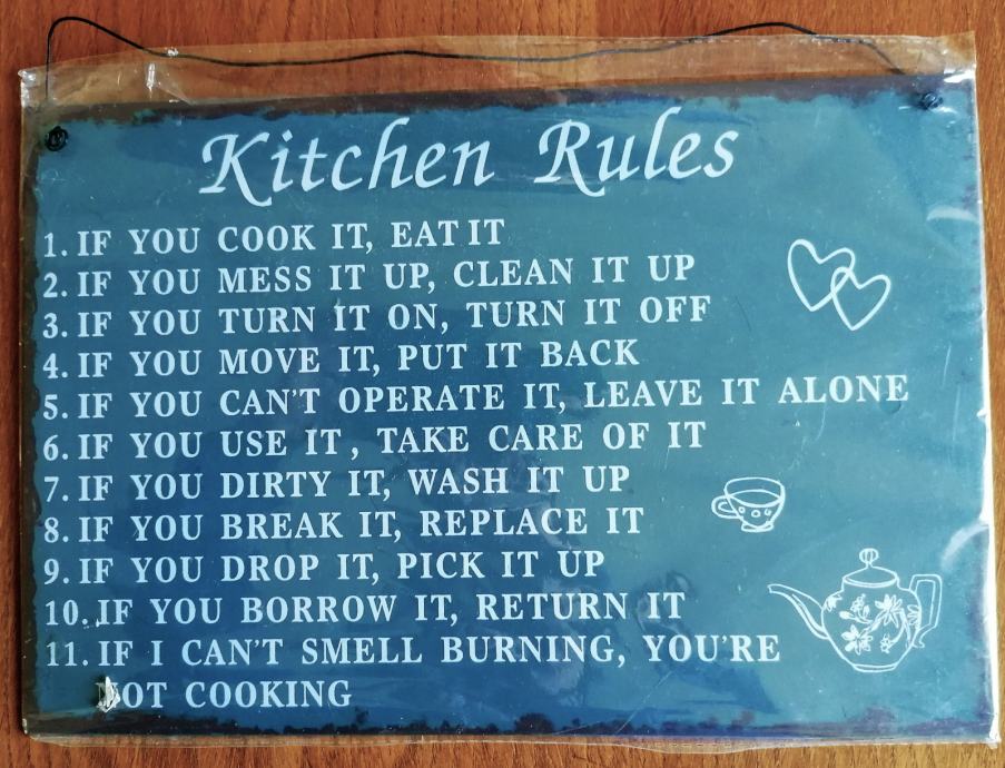 "Kitchen rules", veličina 30 x 20 cm, "Kitchen clean" veličina 27 x 15 cm, cijena po 4 eura.