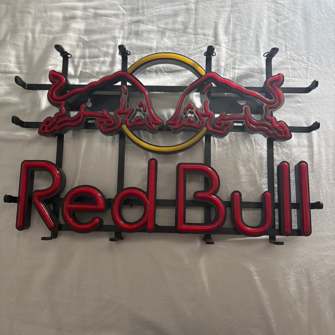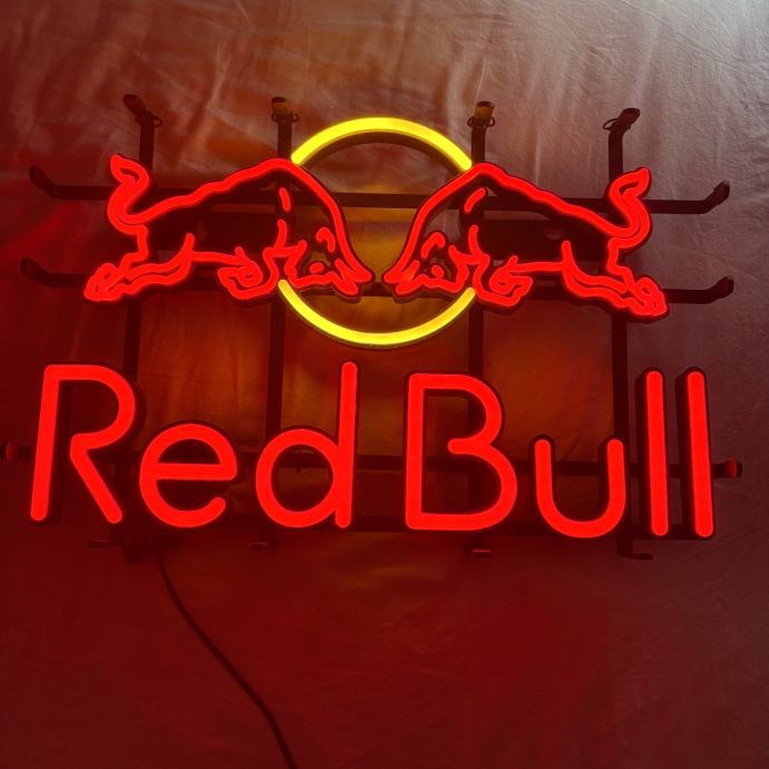 Prodajem novi Red Bull neonski znak, izrađen u prepoznatljivim bojama brenda – crvenoj i žutoj. Radi se o dekorativnom neonskom svjetlećem znaku s logotipom Red Bull, koji uključuje dva bika i karakteristični natpis. Izgleda efektno kako u prostoru s prigušenim svjetlom, tako i kao ukrasni element na zidu. Stanje je novo.