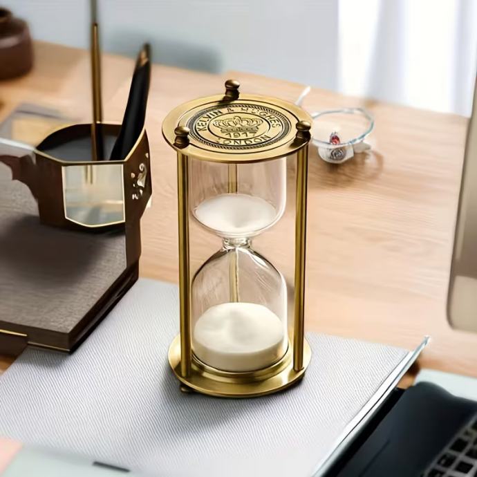Retro pješčani sat - 5-minutni timer, prozirna staklena kugla, pogodno za dom, ured, vjenčanje, kuhinjski ukras - Elegantni ukras za stol, izdržljivi metalni materijal, ukras za pješčani sat, dodatak za vjenčani stol