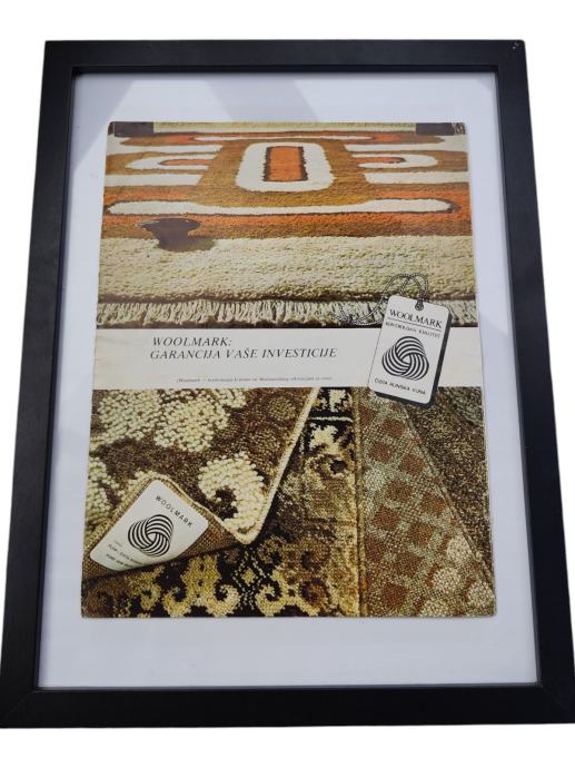 Dekorativna reklama s oznakom kvalitete vune Woolmark. Topli tonovi i uzorci tepiha daju interijerski, “mid-century” ugođaj – savršeno za dnevni boravak vaš bake ili salon.