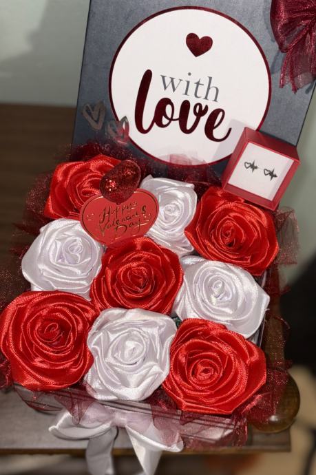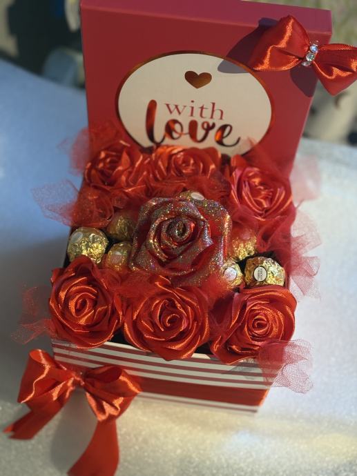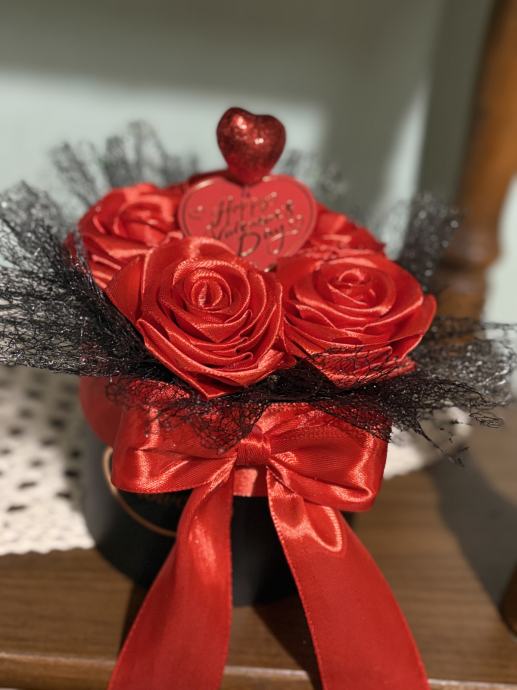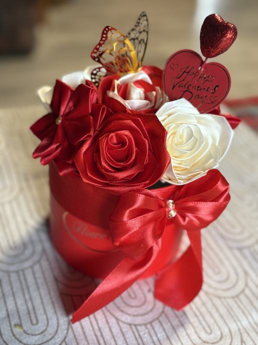 Ručno izrađujem bukete i rosebox od satenske trake. Neki od mojih radova dostupni, ostalo prema dogovoru. Cijene su razne za svakog ponešto.Može izrada prema Vašim željama.