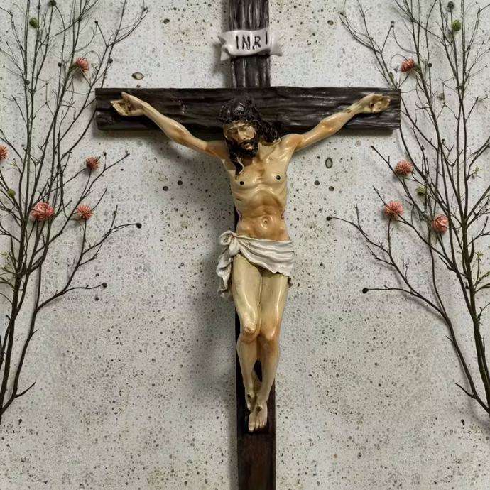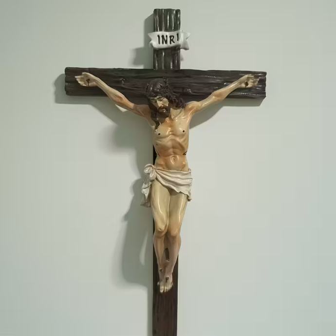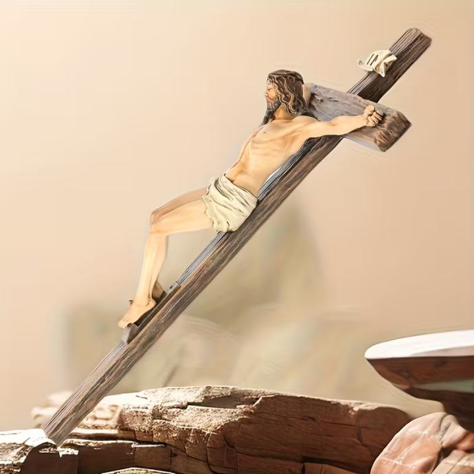 Ručno izrađen kip križa od smole - Tradicionalni kršćanski vjerski zidni ukras Krist na križu, nije potrebna struja - Elegantna dekoracija za dom, crkvu ili ured - Izdržljiv ukras za unutarnji/vanjski prostor - Idealno za Božić, Uskrs, Dan zahvalnosti, Noć vještica