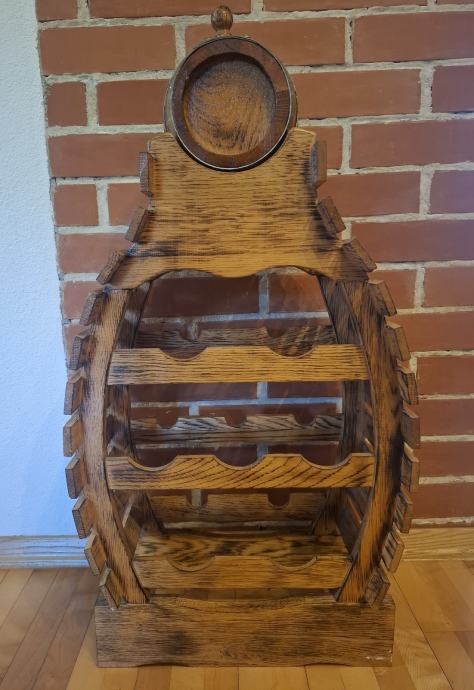 Drveni stalak za 7 boca s bačvicom za vino/rakiju s pipom.