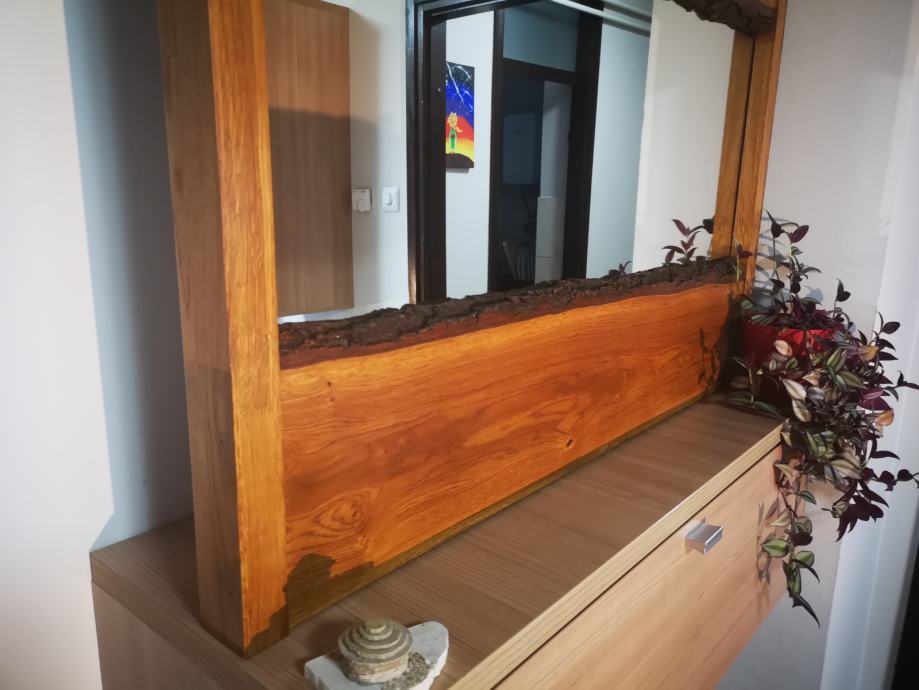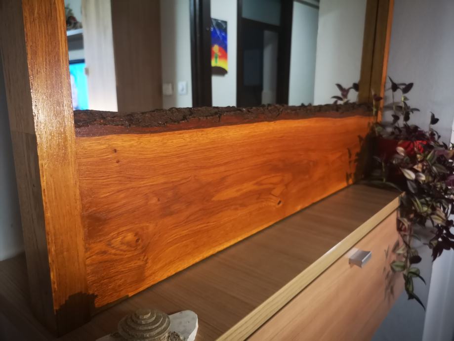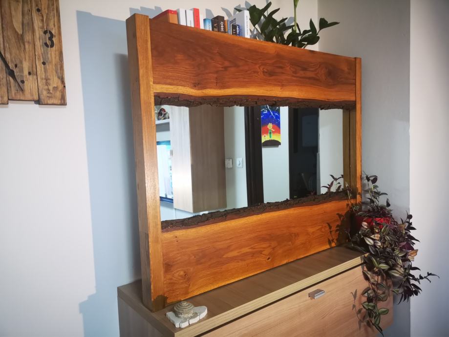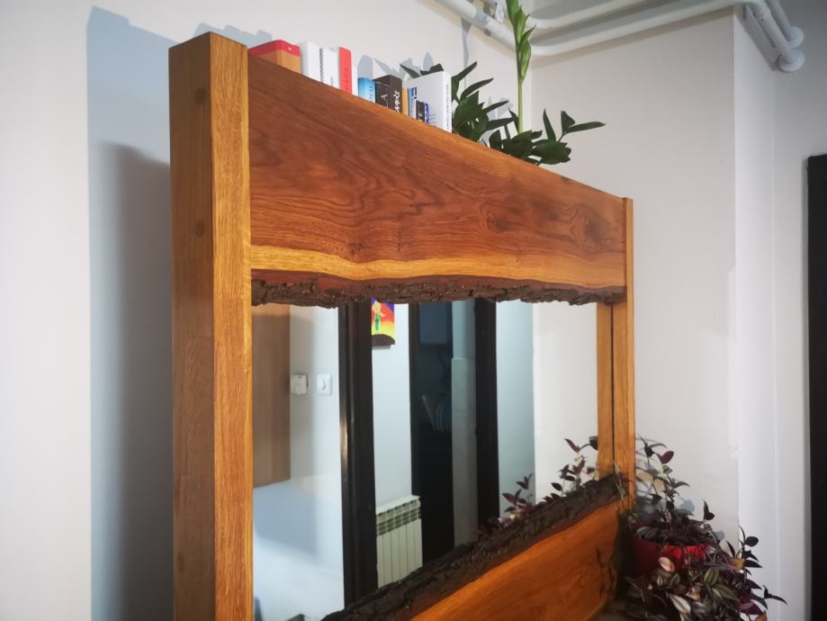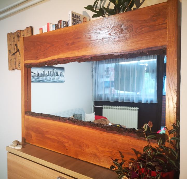 Ručni rad, unikat - masivno zidno ogledalo sa okvirom od punog drva njemačkog hrasta, rustikalnog dizajna i izgleda.