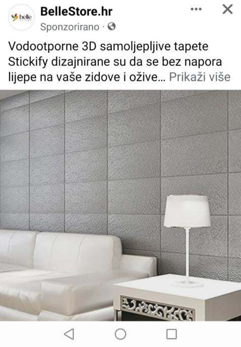3 D samoljepive tapete, vodootporne na vidu i pljesan. Odlicne za kuhinju i kupatilo.