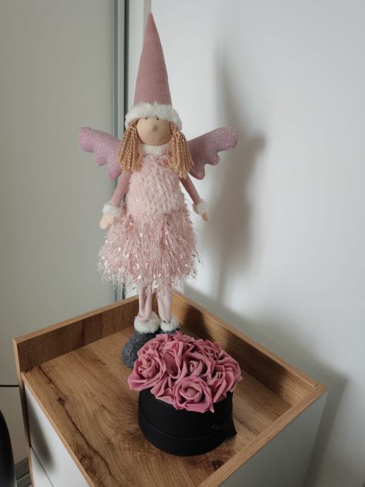 Prodajem samostojeći ukras u obliku anđela u nježnoj rozoj boji. Radi se o dekorativnoj figurici visine 60cm izrađenoj od tekstila, s krilima koja se sjaje. Stoji samostalno i može se postaviti na policu, komodu ili bilo koju drugu površinu kao dekoracija doma. Mogucnost dostave na podrucju grada Zagreba prema dogovoru.