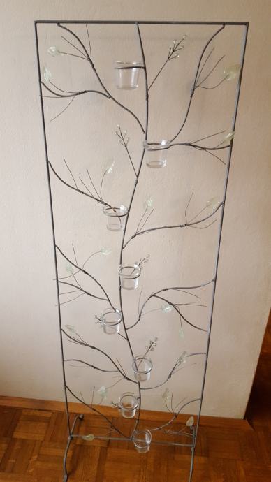 Metalni samostojeći dekorativni panel ili za montažu na zid sa 8 čašica za lučice