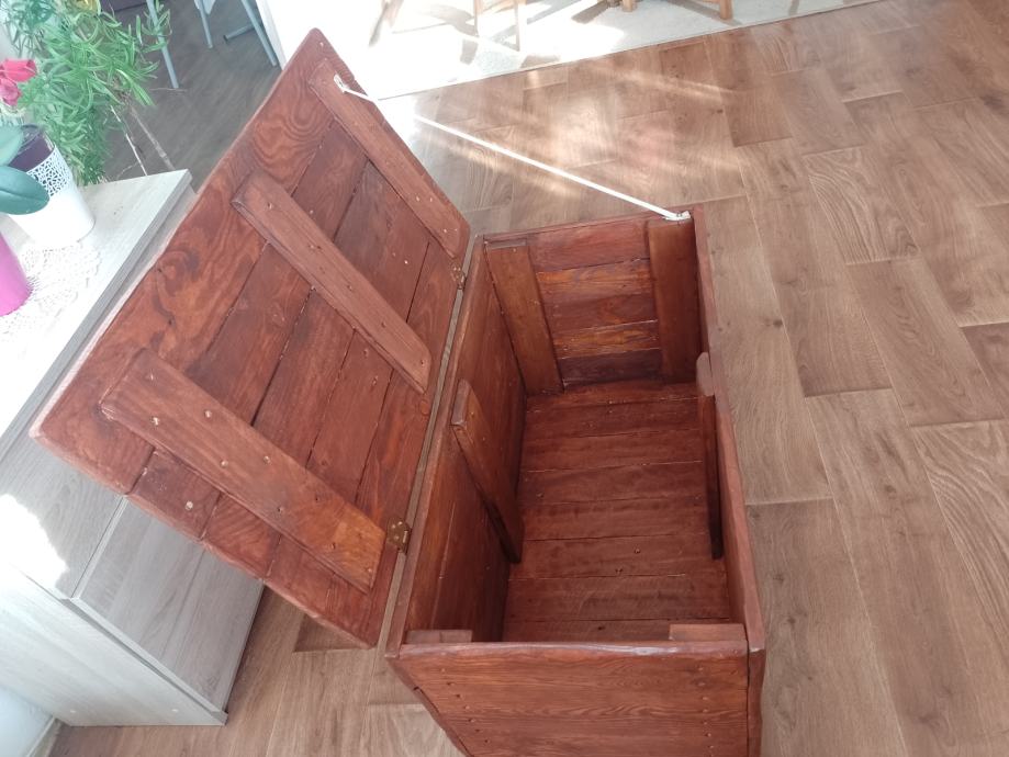 Sanduk za drva,igračke,odlaganje stvari,reciklirano drvo(palete),ručni rad,2sloja laka. Dimenzije d80š40v50 ili po želji.